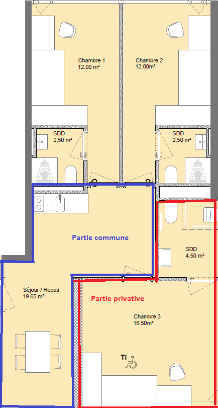 Plan appartement ( 3 chambres)*ne pas tenir compte du code couleur sur l'image
